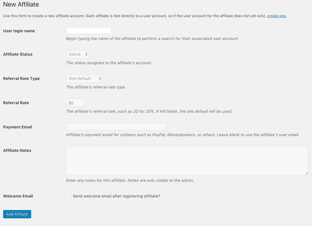Adding new affiliate accounts