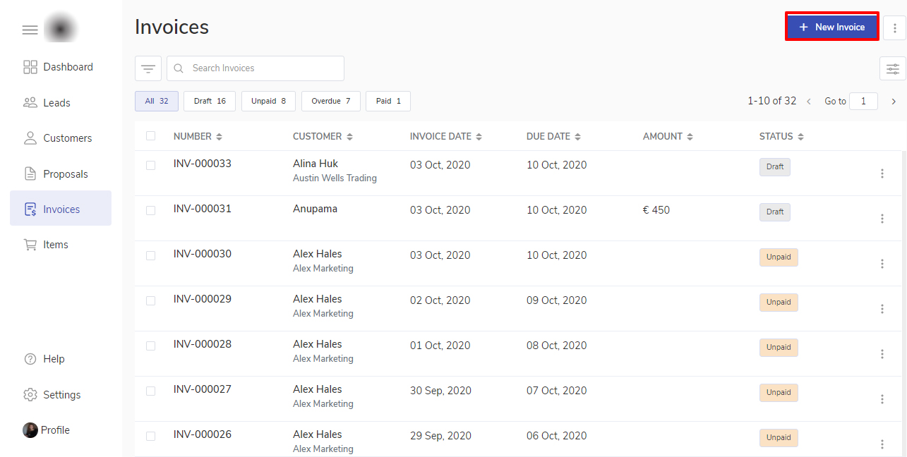 Invoice overview
